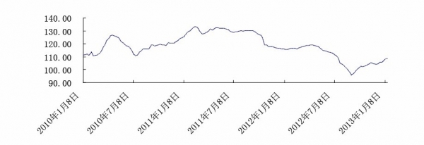 2010-2013年國內(nèi)市場鋼材綜合價格指數(shù)