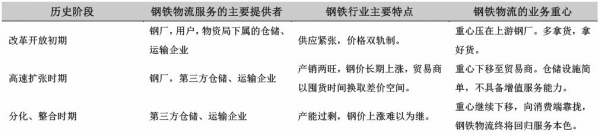鋼鐵物流行業(yè)發(fā)展階段簡表