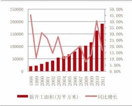 1998-2011年房地產(chǎn)新開工面積及增長(zhǎng)