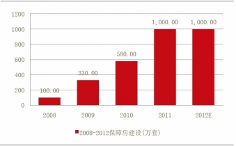 保障房建設(shè)是新增住房的主要構(gòu)成之一,自然也是拉動(dòng)電梯需求的主要?jiǎng)恿χ弧?007年,國(guó)務(wù)院頒布《關(guān)于解決城市低收入家庭住房困難的若干意見》,首次明確提出建立和健全廉租房保障,規(guī)范和改進(jìn)經(jīng)適房管理。2010年當(dāng)年開工建設(shè)590萬(wàn)套保障房,2011年兩會(huì)期間,發(fā)改委透露,“未來(lái)五年要建設(shè)城鎮(zhèn)保障性安居工程3600萬(wàn)套,今年1000萬(wàn)套,明年1000萬(wàn)套,后面三年還有1600萬(wàn)套,使保障性住房的覆蓋率達(dá)到20%。”