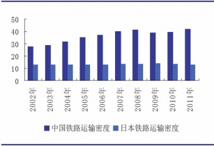 中國鐵路運(yùn)輸密度遠(yuǎn)高于日本
