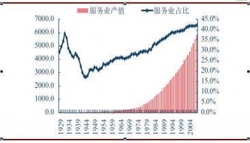 美國(guó)服務(wù)業(yè)在GDP中占比(單位:億美元//%)