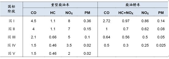 柴油車排放限值:g/kWh