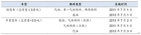 柴油車排放國標實施日程