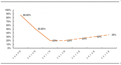 2009-2015年中國高端女裝消費(fèi)增速預(yù)測(cè)