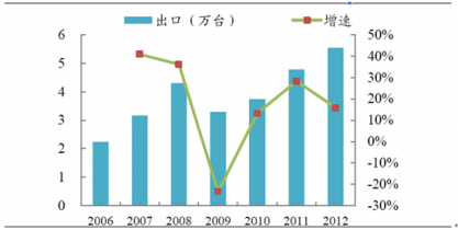 本文導(dǎo)讀:近年來(lái),我國(guó)電梯出口一直保持快速增長(zhǎng),2006-2012年年均復(fù)合增速達(dá)16.2%,考慮到海外經(jīng)濟(jì)的逐步復(fù)蘇,我們假設(shè)未來(lái)3年電梯出口復(fù)合增速不變,那么2013-2015年出口需求分別為6.44、7.49、8.70萬(wàn)臺(tái)。