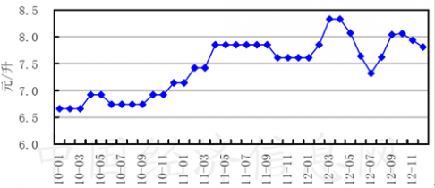 2010年以來我國燃油價格變化情況(以93號汽油為例)