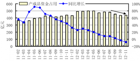 2012年下半年尤其是4季度以來,工程機械企業(yè)去庫存化取得積極進展,庫存壓力大大緩解。截至11月末,工程機械行業(yè)產(chǎn)成品資金占用額438.73億元,同比下降8.03%,連續(xù)兩個月同比下降,庫存規(guī)模明顯縮小,降至年內(nèi)第二低值。