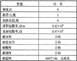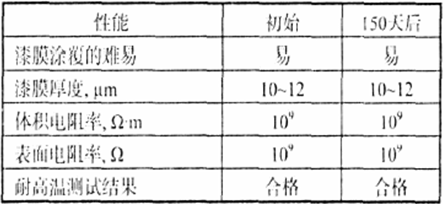 用硅鋼片漆進(jìn)行涂覆并在工業(yè)生產(chǎn)的固化條件下固化成膜,漆膜的性能測試數(shù)據(jù)見下表。