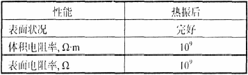 將無機硅鋼片漆在工業(yè)生產(chǎn)要求的固化條件下固化后進(jìn)行熱振測試(從600℃降溫至常溫,往復(fù)12次),并對其“熱振”后的電阻值進(jìn)行了測試,其結(jié)果見下表。