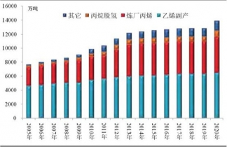 2005-2020年全球丙烯來源分布預(yù)測