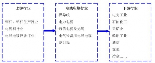 電線電纜行業(yè)是配套行業(yè),在國(guó)民經(jīng)濟(jì)的整個(gè)產(chǎn)業(yè)鏈中位于中游,并不是一個(gè)獨(dú)立發(fā)展的產(chǎn)業(yè)。