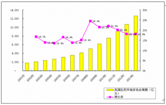 2001年-2013年我國醫(yī)藥零售市場總規(guī)模增長情況