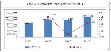 圖表:2013-2014年年我國專用化學(xué)品行業(yè)資產(chǎn)規(guī)模增長趨勢圖