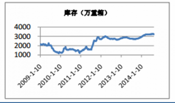 2009-2014年平板玻璃企業(yè)庫存情況(萬重箱)