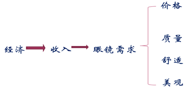 經(jīng)濟影響人們的收入水平進而決定消費者對眼鏡的購買力,人們開始對眼鏡的要求越來越高。