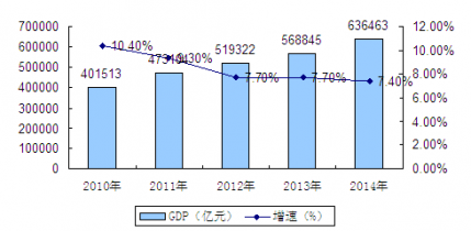 2010-2014年中國GDP產(chǎn)值及增速統(tǒng)計分析