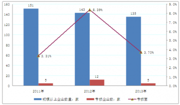 2011-2014年中國煙草制品規(guī)模以上企業(yè)數(shù)量分析