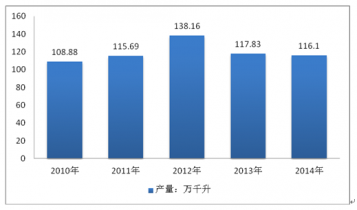 2010-2014年全國葡萄酒產(chǎn)量(萬千升)
