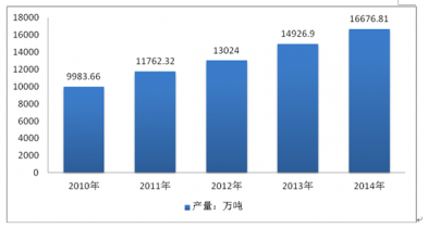 2010-2014年我國(guó)軟飲料產(chǎn)量(萬(wàn)噸)