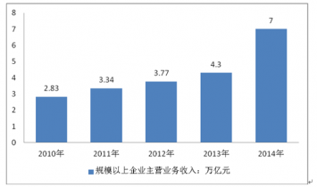 2010-2014年規(guī)模以上建材行業(yè)企業(yè)主營業(yè)務(wù)收入(萬億元)