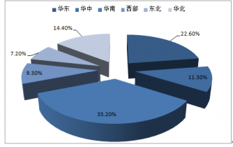 我國(guó)區(qū)域分布上,華南地區(qū)規(guī)模居于首位,其次是華東、華北、華中、西北及東北地區(qū)。