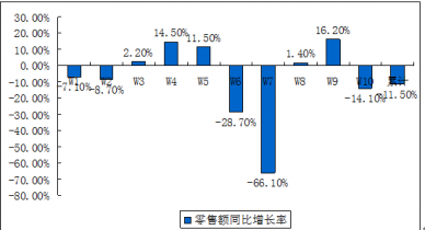 2016年1-10月冰箱市場(chǎng)零售額同比增長(zhǎng)情況