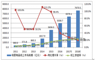2011-2018年中國母嬰用品線上交易規(guī)模