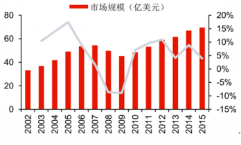中國(guó)床墊市場(chǎng)規(guī)模已經(jīng)超越美國(guó)。據(jù)數(shù)據(jù),2002-2015 年,以出廠價(jià)格計(jì)算,中國(guó)床墊市場(chǎng)規(guī)模從 7 億美元上升至72 億美元,復(fù)合增速20%;美國(guó)床墊市場(chǎng)規(guī)模從 33 億美元升至70億美元,復(fù)合增速6%。