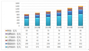 2011-2016年中國(guó)企業(yè)培訓(xùn)按培訓(xùn)職責(zé)細(xì)分市場(chǎng)