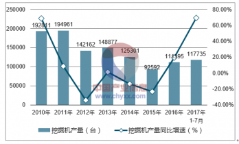 2010-2017年中國(guó)挖掘機(jī)產(chǎn)量及增速