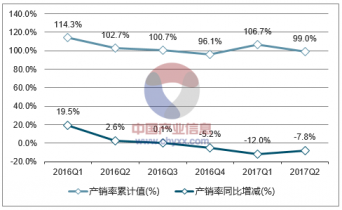 2016-2017年中國(guó)挖掘機(jī)產(chǎn)銷率走勢(shì)圖