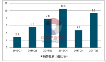 圖表:2014-2017年中國(guó)數(shù)控機(jī)床行業(yè)產(chǎn)量走勢(shì)