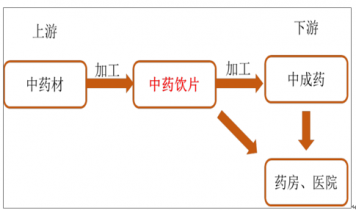 中藥飲片在產(chǎn)業(yè)鏈中處于核心地位中藥飲片處于中藥工業(yè)產(chǎn)業(yè)鏈中游,是中藥產(chǎn)業(yè)鏈中最重要一環(huán)。中藥飲片由上游中藥材加工而來,可直接向下游醫(yī)療機(jī)構(gòu)出售,于臨床使用;也可加工為中成藥,再向醫(yī)療機(jī)構(gòu)出售。