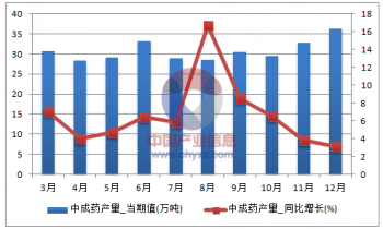 2016年1-12月全國(guó)中成藥產(chǎn)量統(tǒng)計(jì)圖