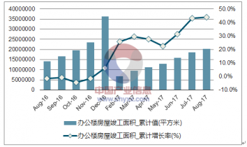 數(shù)據(jù)顯示:2017年1-8月份中國(guó)房地產(chǎn)開(kāi)發(fā)企業(yè)辦公樓房屋竣工面積20220000.00平方米,同比增長(zhǎng)43.70%;2016年1-12月份中國(guó)房地產(chǎn)開(kāi)發(fā)企業(yè)辦公樓房屋竣工面積36292716.00平方米,同比增長(zhǎng)6.10%。