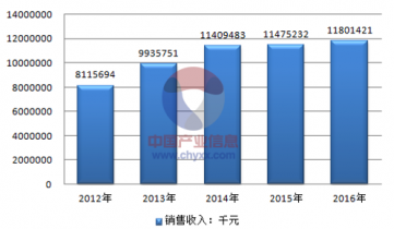 2012-2016年北京市城市供熱行業(yè)銷售收入總計(jì)