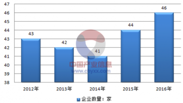 2012-2016年北京市城市供熱企業(yè)數(shù)量
