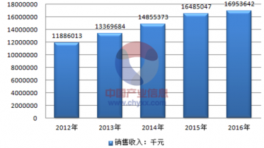 2012-2016年山東省城市供熱行業(yè)銷售收入總計(jì)