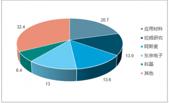 2016年全球半導(dǎo)體晶圓級(jí)制造設(shè)備市場(chǎng)規(guī)模達(dá)374億美元,前5大半導(dǎo)體設(shè)備廠商占據(jù)了67.6%市場(chǎng)份額,其中應(yīng)用材料(美國(guó))市場(chǎng)份額達(dá)20.7%,拉姆研究(美國(guó))13.9%,阿斯麥(荷蘭)13.6%,東京電子(日本)13.0%,科磊(美國(guó))6.4%。