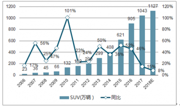 2006-2018年中國(guó)乘用車市場(chǎng)SUV銷量