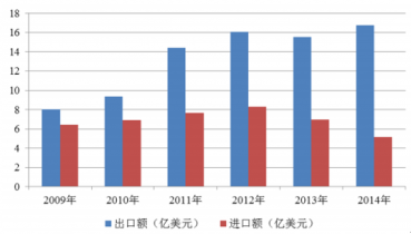 2009-2014 年中國(guó)礦山機(jī)械制造出口額和進(jìn)口額