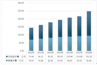 2010-2016年中國牙膏細(xì)分產(chǎn)品銷售規(guī)模情況 |