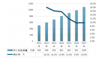 2011-2017年中國實心輪胎市場銷量統(tǒng)計