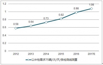 由于我國(guó)機(jī)動(dòng)車檢測(cè)行業(yè)發(fā)展時(shí)間較短,機(jī)動(dòng)車檢測(cè)市場(chǎng)的發(fā)展遠(yuǎn)滯后于汽車保有量增長(zhǎng)。伴隨著我國(guó)汽車保有量的高速增長(zhǎng),機(jī)動(dòng)車檢測(cè)市場(chǎng)增速將遠(yuǎn)大于汽車保有量增速。根據(jù)《機(jī)動(dòng)車環(huán)保檢驗(yàn)機(jī)構(gòu)發(fā)展規(guī) 劃編制工作指南》規(guī)定,按簡(jiǎn)易工況法檢測(cè)線檢測(cè)量每年為 1-2 萬(wàn)輛。假如按照 1.5 萬(wàn)輛/年測(cè)算,每條線對(duì)應(yīng) 52.8 輛次/天檢測(cè)次數(shù)。假設(shè)每條檢測(cè)線每天可檢測(cè)輛次悲觀、中性、樂觀分別對(duì)應(yīng) 50/75/100 輛次,測(cè)算我國(guó)機(jī)動(dòng)車檢測(cè)線需求量為 1.62-3.25 萬(wàn)條,機(jī)動(dòng)車檢測(cè)站 理論需求量 0.81-1.62 萬(wàn)個(gè)。