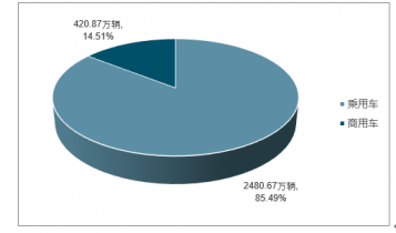 2017年中國(guó)乘用車產(chǎn)量為2480.67萬(wàn)輛,同比增長(zhǎng)1.58%;2017年中國(guó)商用車產(chǎn)量為420.87萬(wàn)輛,同比增長(zhǎng)13.81%。2017年中國(guó)汽車產(chǎn)量為2901.54萬(wàn)輛,其中乘用車占比85.49%,商用車占比14.51%。