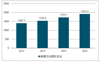 2016年全國(guó)居民用于文化娛樂(lè)的人均消費(fèi)支出為800元,比2013年增長(zhǎng)38.7%;屬于文化服務(wù)業(yè)的文化娛樂(lè)支出占全部消費(fèi)支出4.7%,高于2013年4.4%的水平,文化產(chǎn)業(yè)結(jié)構(gòu)進(jìn)一步優(yōu)化和升級(jí)。