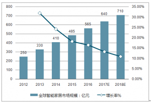圖表:2012-2018年全球智能家居市場規(guī)模預(yù)測