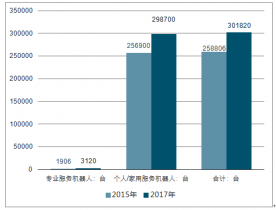 2015、2017年中國專業(yè)服務機器人細分領域市場銷量(單位:臺)