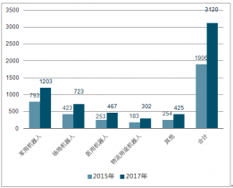 2015、2017年中國專業(yè)服務(wù)機(jī)器人細(xì)分領(lǐng)域市場銷量(單位:臺)